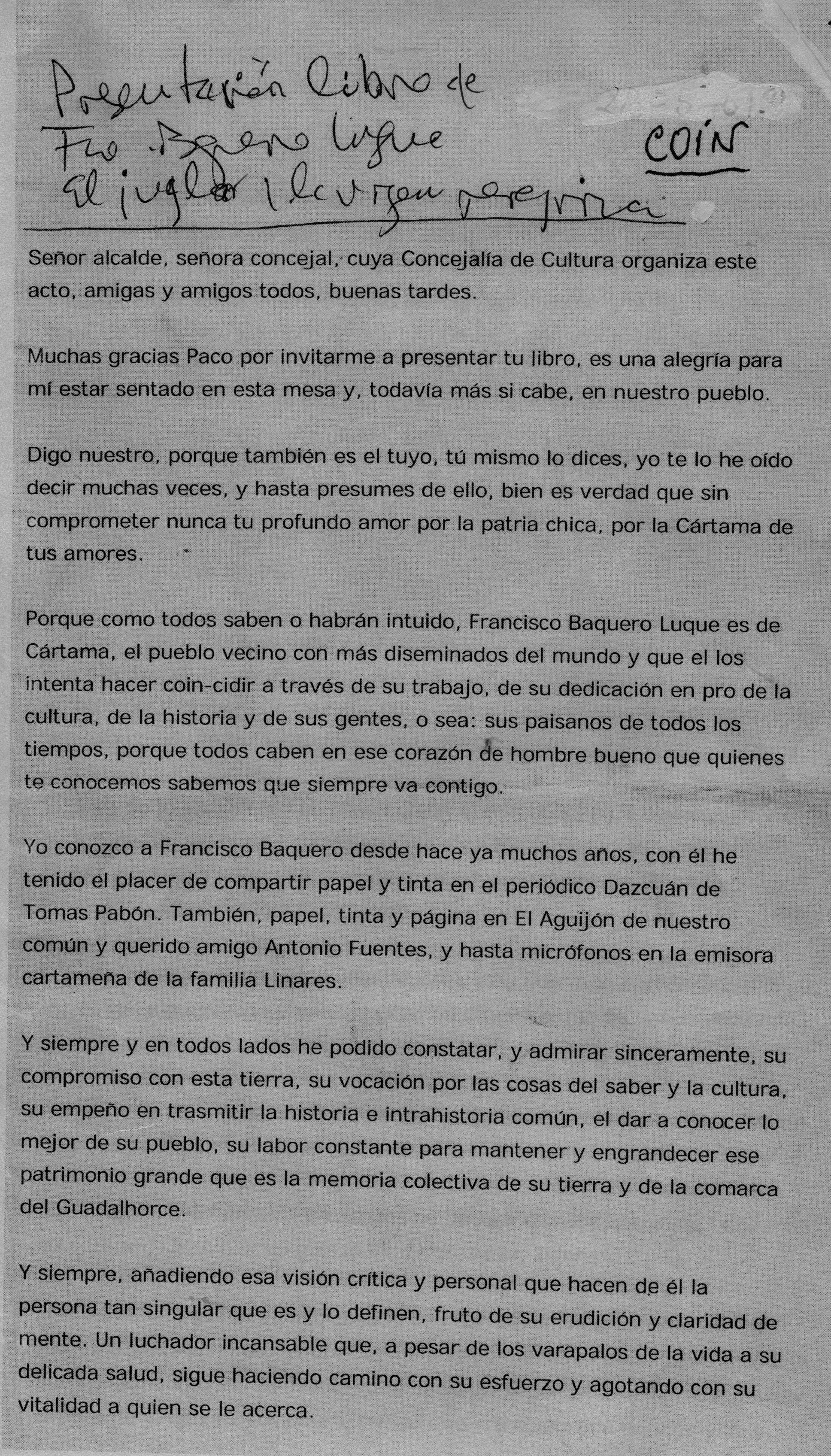 pero, usted, “que es el que MANDA en Cártama, ha dado la callada por respuesta orgullosamente como “mandamás”. Attmte. Firma. Francisco Baquero Luque. Este trabajo